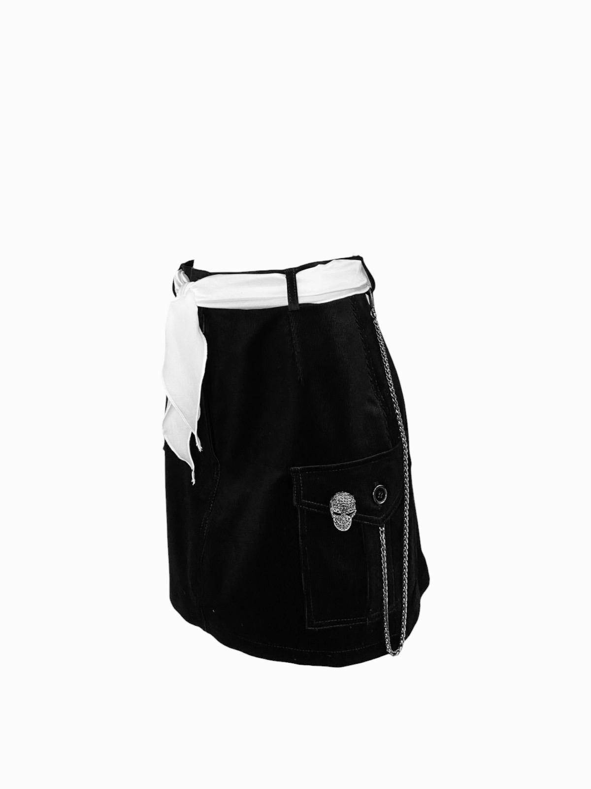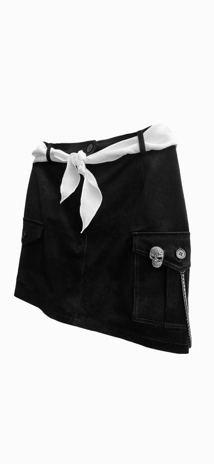 - Ribbed velvet skirt decorated with detachable accesories. Hidden zip closure.