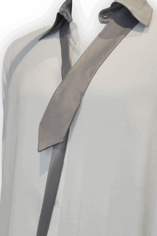 - Flowy oversized shirt with an included tie.